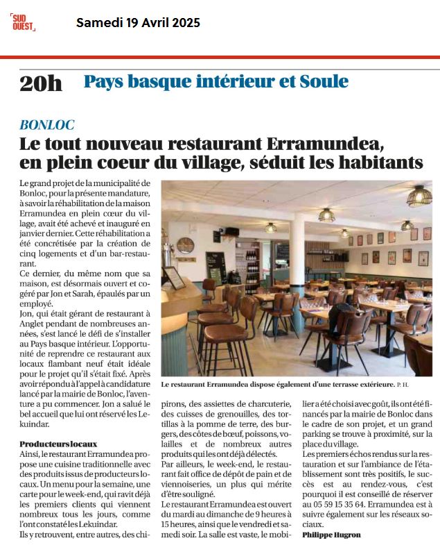 Nouveau restaurant Erramundea